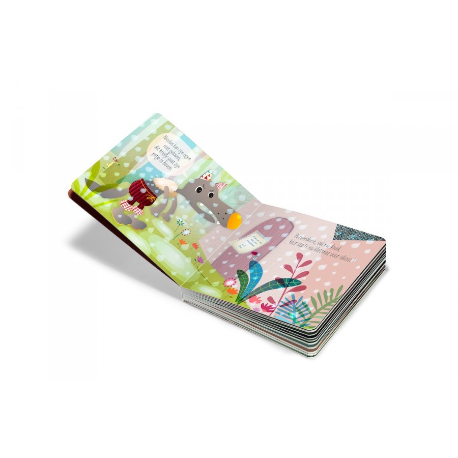 Buch auf Niederländisch geschrieben - Umkehrbuch mit zwei Figuren, die konträre Sichtweisen haben : Nicolas, der Wolf, der mit dem falschen Fuß aufgestanden ist und das kleine Mädchen Sasha, das gut gelaunt aus den Federn hüpft. In der Mitte treffen sich die beiden und tauschen sich aus. So können Sie Ihrem Kind erklären, wie unterschiedliche Perspektiven –optimistische und pessimistische – die Wahrnehmung im Alltag beeinflussen.
