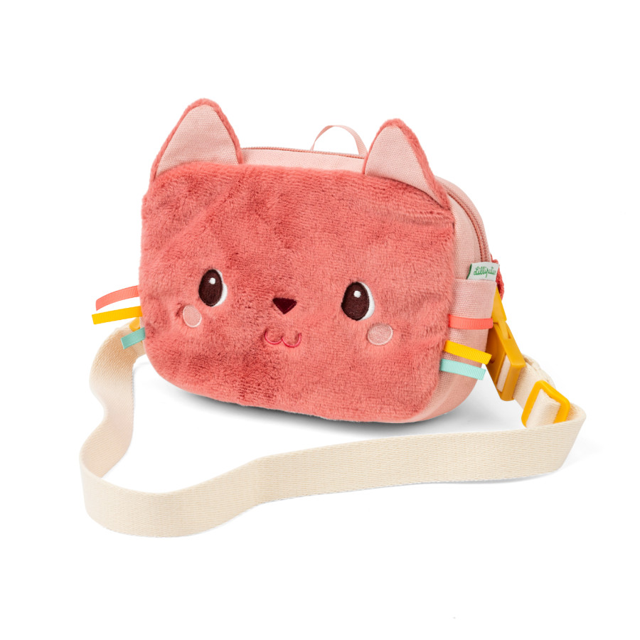 Sehr sanft und kuschelig lädt sich Jeanne zu euren Ausflügen ein! Dieser Beutel im Bild der Katze Jeanne verführt mit seiner angenehmen Berührung, seinen kleinen Ohren und seinen bunten Schnurrhaaren. Mit ihrem freundlichen Gesicht beruhigt Jeanne dein Kind bei seinen ersten Ausflügen. Die Tasche lässt sich problemlos an der Vorderseite des Mix & Match Rucksacks befestigen, um eine einzigartige und stilvolle Kombination zu schaffen. Harmonisiere Farben für einen passenden Look oder wage es, für einen originellen Stil zu kontrastieren: Das liegt an dir! Praktisch und clever hält die Jeanne-Clutch kleine Schätze griffbereit: ein Kuscheltier, Bleistifte oder die Muschel, die man unterwegs findet. Und wenn du leicht reisen musst, lässt sich sie dank des mitgelieferten Gurts in eine Bauchtasche oder Schultergurt umwandeln. Hergestellt aus Polyester und Baumwolle, ist es auf der Oberfläche leicht zu reinigen. Mit den Maßen 4,5 x 22 x 15 cm ist diese Lilliputiens-Clutch ideal für die ersten Ausflüge Ihres Kleinen! Auf geht es!