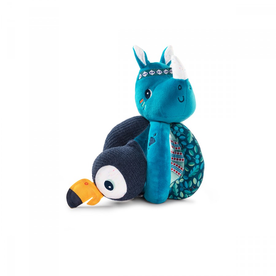 Eine originelle Rassel, für kleine Händchen einfach festzunehmen. Zwischen den Handgriffen versteckt sich ein kleiner Freund.