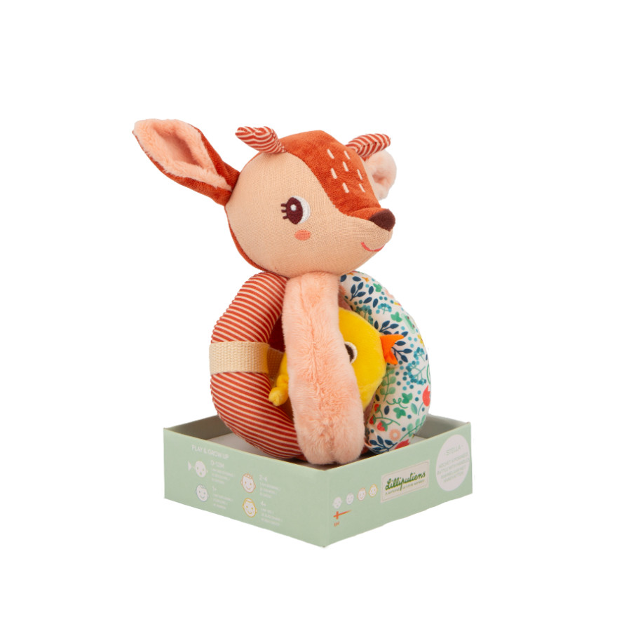Eine originelle Rassel, für kleine Händchen einfach festzunehmen. Zwischen den Handgriffen versteckt sich ein kleiner Freund.
