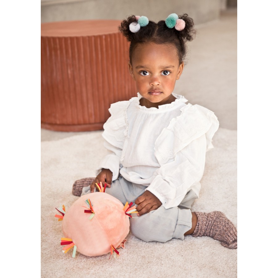 Dieser weiche Ball in fröhlichen Farben ist perfekt für kleine Händchen. Die Stoffe, die Löcher und der fröhliche Klang stimulieren die Sinne. Kleinkinder können zudem in aller Sicherheit ihre Wurf- oder Fußballtalente entfalten.