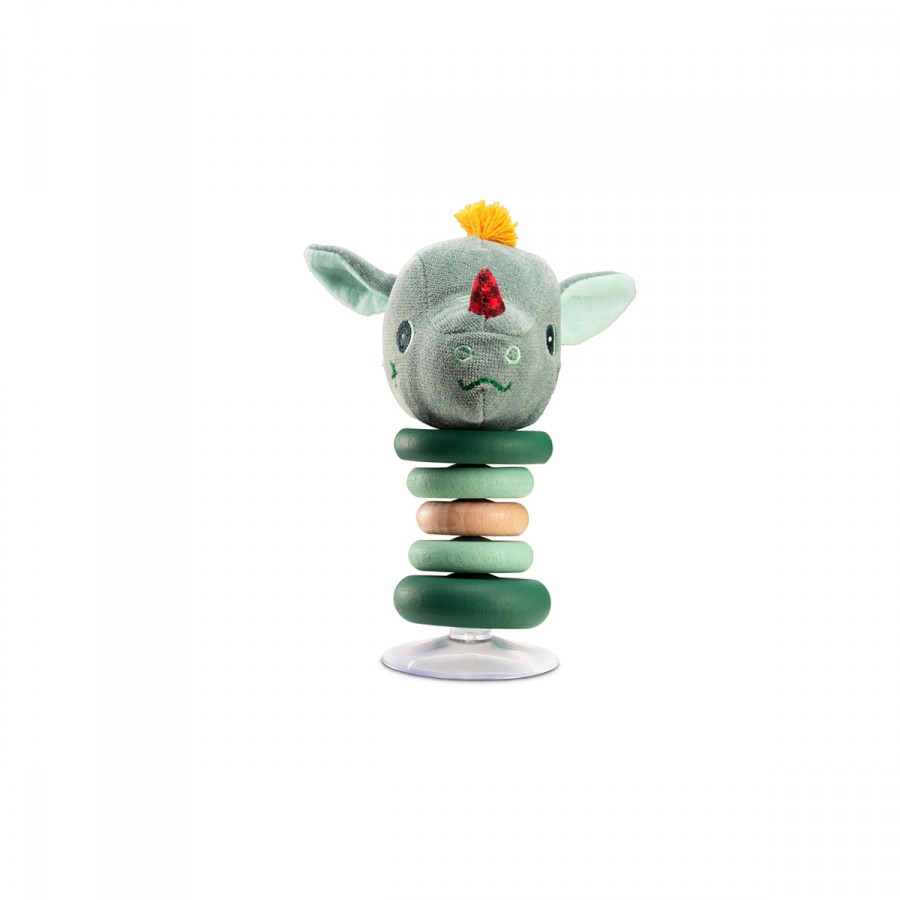 Diese Rassel schwingt beim kleinsten Stoß fröhlich hin und her. Durch den Saugnapf bleibt sie robust stehen und kann überall befestigt werden.
