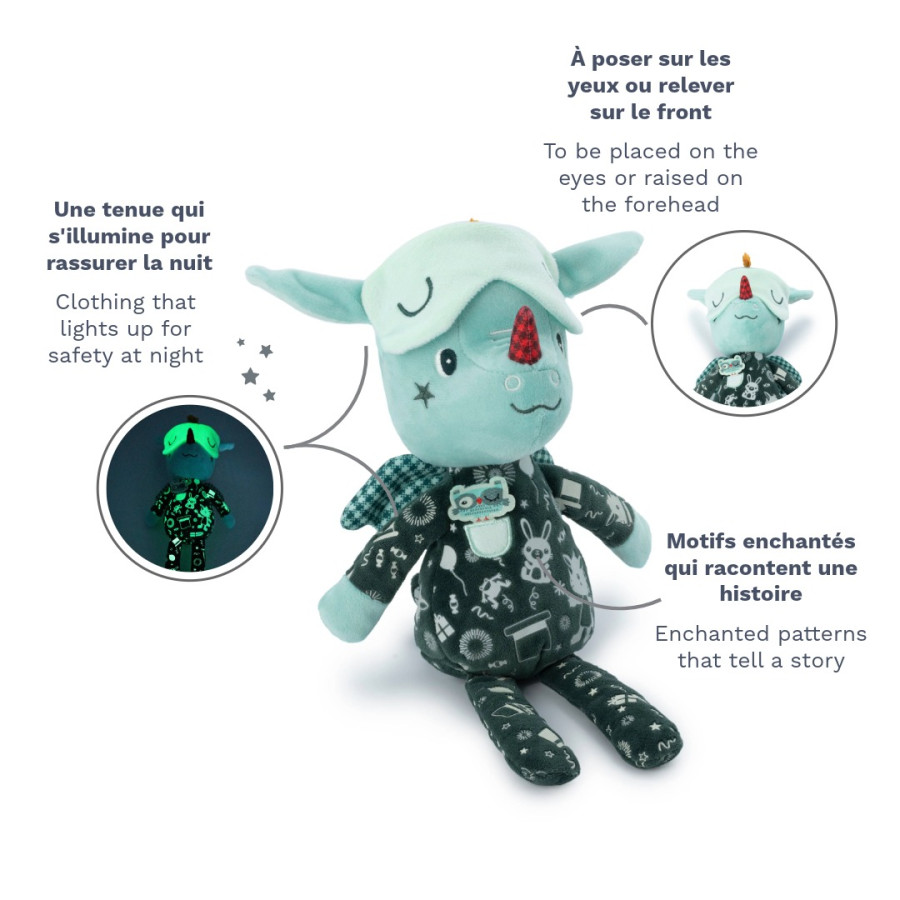 In Gesellschaft seines Freundes Joe wird Ihr Schätzchen süß träumen. Joe trägt einen Zauberschlafanzug, der im Dunkeln leuchtet. Gute Nacht, mein Engelchen.