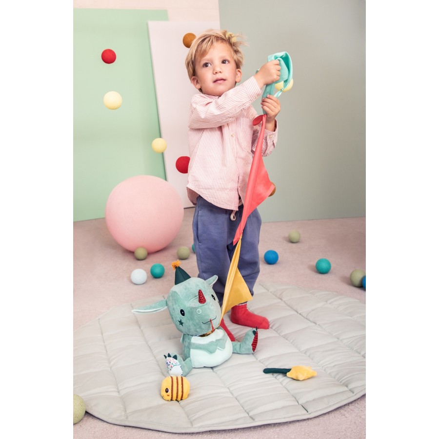 La peluche est mignonne, d'une bonne taille pour un enfant de deux ans, les petits oreilles font un bruissement agréable aux oreilles, la baguette magique aussi et les tissus sont doux au toucher.