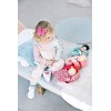 Ein Püppchen zum Kümmern – als sei es ein echtes Baby. Windeln wechseln, an- und ausziehen ... Das Püppchen kann überallhin mitgenommen werden und schläft in seiner Babytragetasche. Fördert Feinmotorik, Einfühlungsvermögen und Vorstellungskraft.