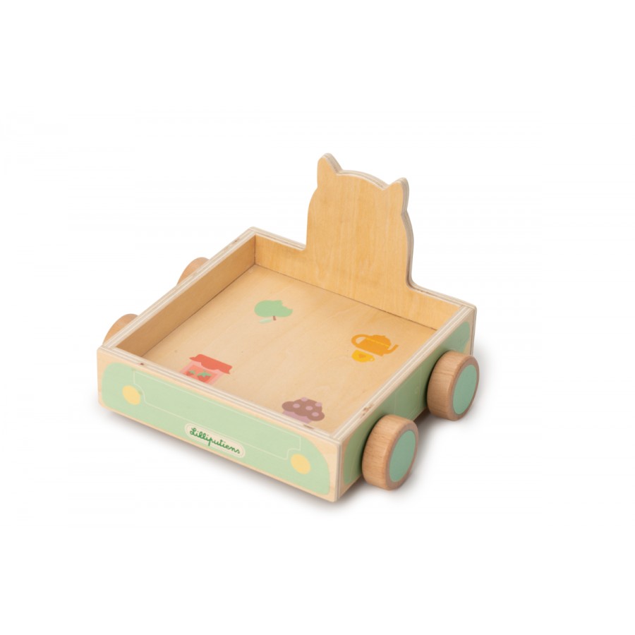 Louis, der Wolf, nimmt Oma, Rotkäppchen, das Schwein und das Schaf mit auf einen Ausflug in seinem Auto für ein köstliches Picknick. Dieses originelle Auto ist nicht nur ein Ziehspielzeug, sondern auch ein Formensortierer. Motorische Fähigkeiten, Gehirn und Vorstellungskraft werden auf spielerische Weise angeregt.