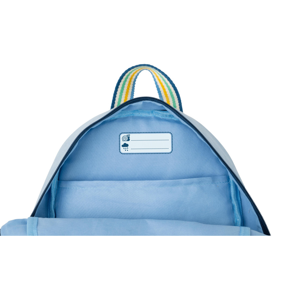 Ein speziell entwickelter Rucksack, um Kleinkinder auf all ihren Expeditionen zu begleiten! Damit besteht kein Risiko, dass die Sachen Ihres Kindes bei Ausflügen im Regen nass werden. Es besteht aus hochwertigen, wasserdichten, PET-recycelten Materialien. Mit seinen sanften Tönen und wunderschönen farbenfrohen Rillen ist dieser ozeanblaue Rucksack in den Farben unseres Freundes, der Schnecke. Übrigens, wenn man genau hinsieht, ist es vorne in die Tasche gerutscht: Die verrückten Abenteuer deines Kleinen würde es nicht verpassen! Dank seiner verstellbaren Schultergurte passt sich der Rucksack an die Größe Ihres Kindes an. Was den gepolsterten Rücken betrifft, so sorgt er für echten Komfort. Die Maße von 11 x 29 x 30 cm machen sie zu einer idealen Tasche, um die Schätze Ihres Kleinkindes für die Schule oder bei Familienspaziergängen aufzubewahren. Im Inneren der Tasche gibt es einen Platz, um den Namen des glücklichen Besitzers aufzuschreiben. Und zur zusätzlichen Sicherheit befindet sich ein reflektierender Streifen an einem der Schultergurte. Für eine zu praktische Aufbewahrung ermöglicht ein Gummiband im Inneren der Tasche, eine Wasserflasche zu halten. Aber das ist noch nicht alles! Neben all diesen Funktionen ist diese Tasche auch individuell anpassbar! Es ist eine der Lilliputian Mix & Match Taschen, die mit einem schönen Beutel vorne als Accessoire ausgestattet werden kann. Wählen Sie aus den 6 Clip-On-Modellen, um sie zu einem einzigartigen Begleiter zu machen! Der Beutel ist super praktisch, um viele Gegenstände zu verstauen, die man leicht greifen möchte. Abenteuer!