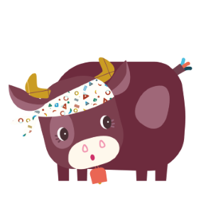Rosalie the cow is our pretty rebel, fearless, go-getter, always ready to jump over the fence to go on an adventure with her friend Ignace and the others. She's the leader of the farm gang!