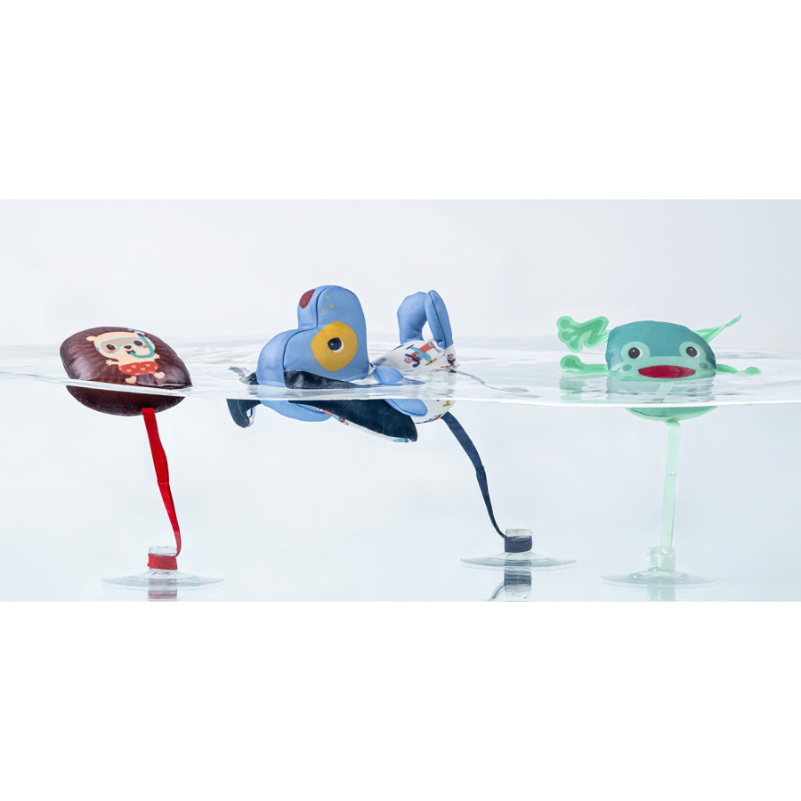 Jules the dog and his friends love taking a bath with baby! This bath toy consists of 3 characters with suction cups, practical and original. They are ideal for toddlers from 3 months and even for older children. They measure 8 x 7.5 x 7 cm. No more toys that move away from your child with the waves in the bathtub! Thanks to their suction cups, Jules the dog and his friends the hedgehog and the frog will always be within baby's reach. Attach them to the wall or bottom of the bathtub, and watch them dance on the water! It's perfect for developing the sight and motor skills of the little ones. Colorful, with their different expressions, these bath toys can also be used in the shower. Jules does the plank and lets his big ears float on the water, while the frog dives showing his funny legs and Léon the hedgehog explores the depths with his snorkel. Made of polyester, these 3 bath toys dry quickly, which is really practical and hygienic! We advise you to dry the characters after each use and to machine wash them at 30° if necessary. Let baby explore at his own pace when washing, and your evening ritual will be even more fun. With his first Lilliputiens bath toy, baby enjoys splashing! It's ideal when you want to cool him down by having fun in the water on a hot day. 1, 2, 3 ... Bath time Jules!