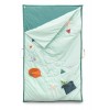 On this soft, beautifully illustrated play mat, you'll meet Joe the dragon and his magic tricks. In company of the little dragon rattle, baby discovers and explores the many activities, like crinkle noises, loose parts and glow in the dark. When baby gets bigger, the play mat becomes a cozy sleeping bag for sweet naps. Thanks to the handles, it is easy to take with you. 2 in 1: a play mat that evolves with your baby and becomes a sleeping bag.