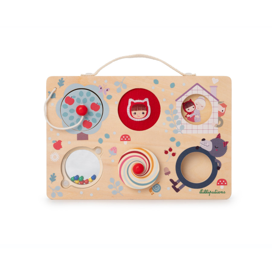 Twist, pull, open, nestle, shake and observe the activities of fairytale friends: Louis the wolf and Red Riding Hood. What's behind the apple tree?