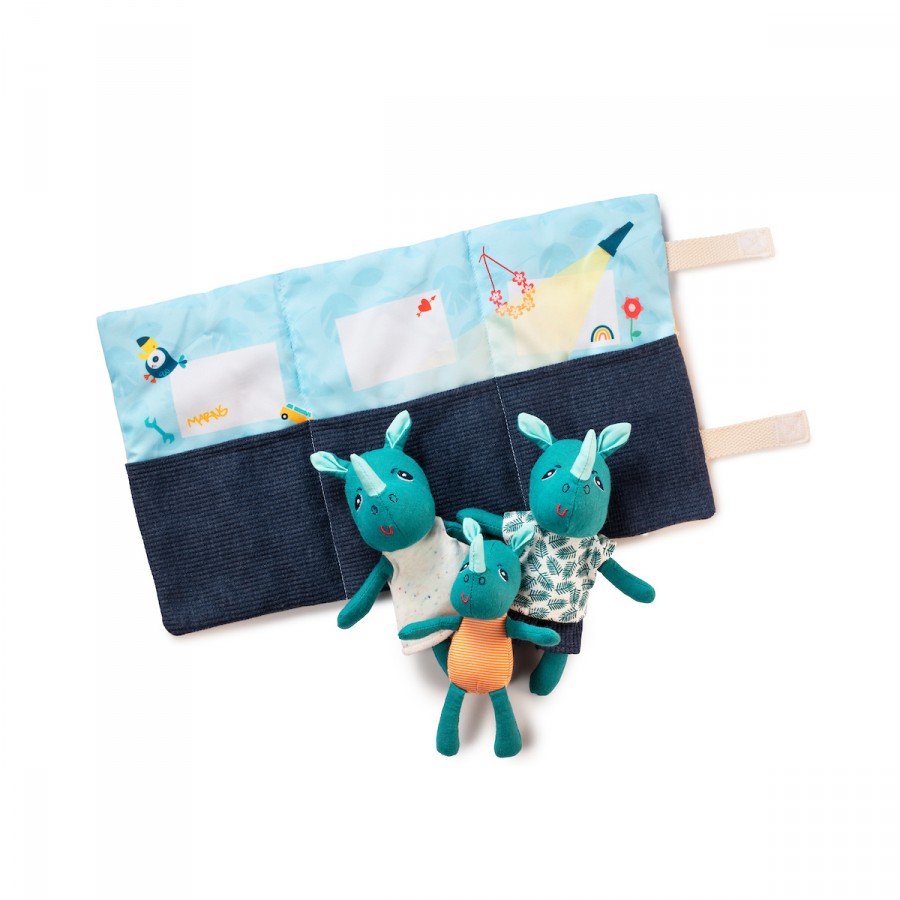What a cute rhino family. Mommy, daddy and baby Marius go to sleep in their cosy bed after a day at the beach. But don't forget to undress them first! This mat and its occupants are easy to take with you. So your toddler can have great adventures anywhere with these endearing characters.