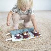 What a cute cow family. Mommy, daddy and baby Rosalie go to sleep in their cosy bed after a day at the farm. But don't forget to undress them first! This mat and its occupants are easy to take with you. So your toddler can have great adventures anywhere with these endearing characters.