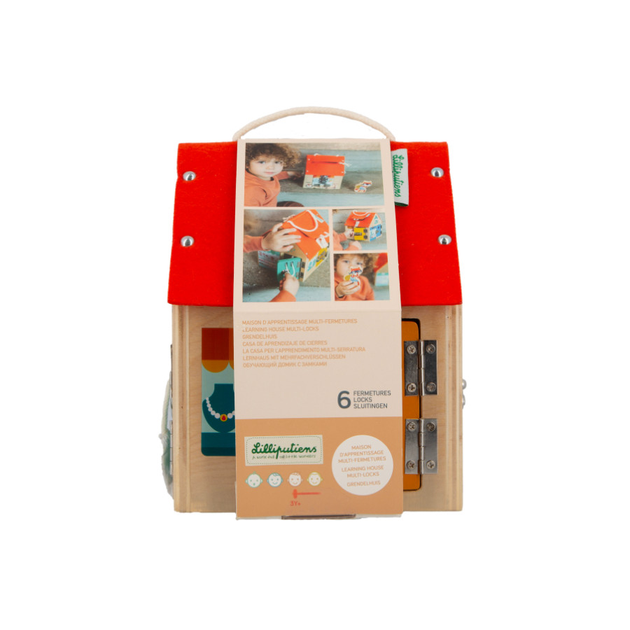 Attention! There is a cunning burglar on the prowl. Quickly check all the locks in the house. Or are you the burglar's accomplice and will you open the locks for him? This house introduces toddlers to different locking systems and stimulates the imagination in a playful manner.