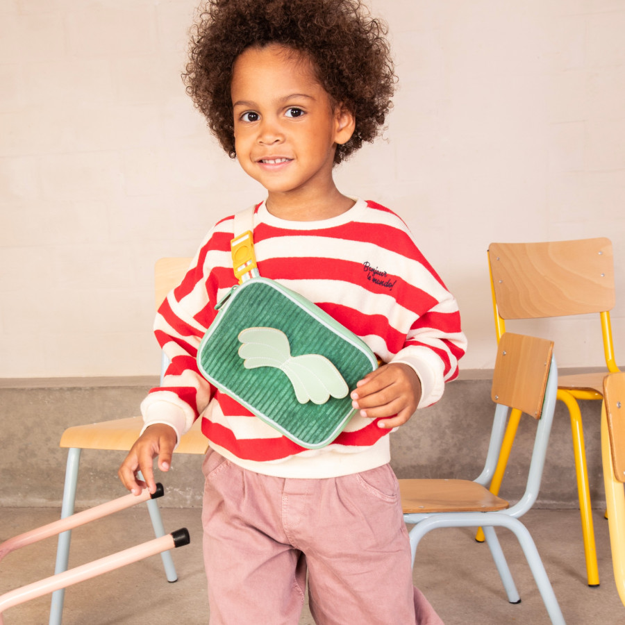 Ready to fly with Joe? This bright green pouch, adorned with powerful dragon wings, transports kids to the fantastical world of Joe, our fearless dragon always ready for epic adventures. Each Mix & Match backpack can be customized with the pouch of your choice: simply clip it on the front to create a stylish and colorful combination. Match the tones for a harmonious look or dare to contrast for a daring duo: it's up to you! Practical and clever, the Joe pouch holds all the little treasures to keep close at hand: a cuddly toy, pencils or that magical pebble found along the way. And when the quest goes on, it transforms into a fanny pack or shoulder strap thanks to the included strap. Made of polyester and cotton, it is easy to clean on the surface. With its dimensions of 4.5 x 20 x 14 cm, this Lilliputiens clutch is ideal to accompany your little one's first adventures! On the way to a legendary journey!