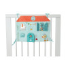¡Hay actividad en la casa de Stella y Joe! Suena la campana... la puerta y las cortinas se abren, la abeja zumba alrededor de la flor... Este panel lleno de descubrimientos y actividades estimulantes se adhiere fácilmente a la cuna del bebé.