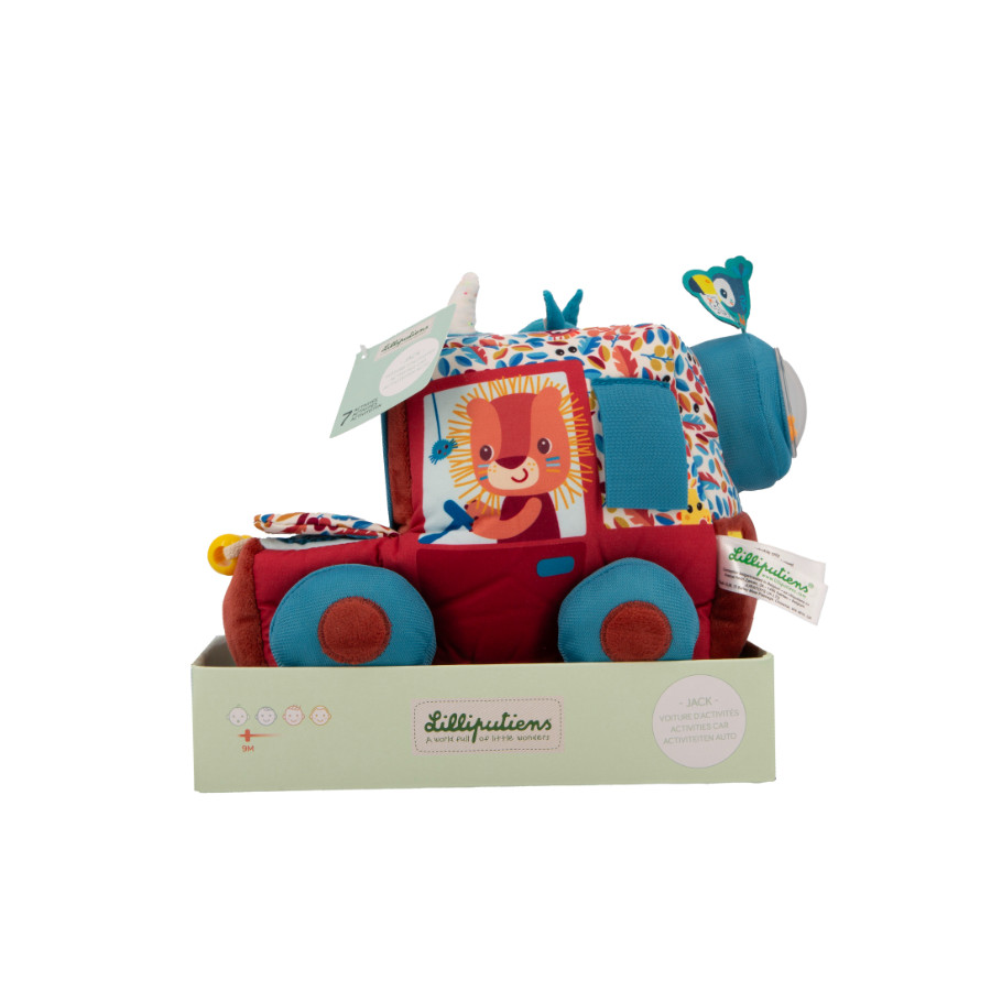 Con Jack al volante y Marius asomando la cabeza por el techo para vigilar el camino, el coche safari está listo para partir en busca de tierras salvajes. Con sus colores vibrantes y sus texturas variadas, ofrece un mundo de exploración sensorial para los pequeños aventureros. Las múltiples actividades invitan a los pequeños exploradores a desarrollar sus sentidos, su creatividad y su curiosidad.