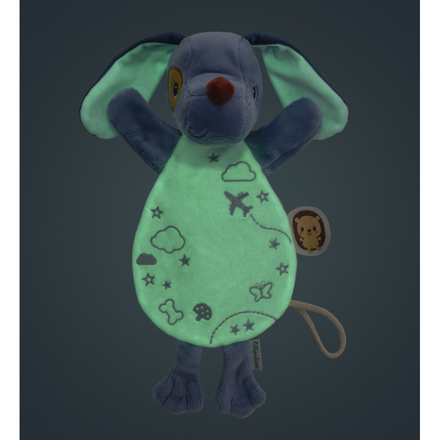 ¡Un peluche que lo hace todo! Adecuado desde el nacimiento, este peluche del perro Jules lo tiene todo para complacer. Es ante todo un compañero constante para el bebé, muy gentil y con una cara sonriente y amigable. El bebé lleva su peluche azul a todas partes y se mantiene seguro y tranquilo durante todo el día. ¡También es un peluche de marioneta! Desliza tus dedos en los brazos del perro y detrás de la cabeza del perro, ¡y vamos por el espectáculo! ¿Sabías que nuestro querido Jules es un aviador excepcional? Hazlo revolotear, cantar canciones infantiles, jugar al "cucú"... ¡Suficiente para entretener a tu pequeño y compartir grandes momentos de complicidad! Pero eso no es todo: es un peluche que brilla en la oscuridad. Después de un día de juegos y mimos, es hora de una buena noche de sueño. Con un peluche que brilla en la oscuridad, el bebé se tranquiliza en la oscuridad y nunca lo pierde. Apague la luz y observe el vientre y las orejas de este peluche bordado: ¡qué hermoso resplandor relajante! El pequeño extra de este peluche liliputiense es la hebilla de chupete integrada, ideal para no perderlo nunca de día ni de noche. Para anotar la información del pequeño dueño de este peluche para perros, se proporciona una etiqueta con forma de erizo. Un regalo de nacimiento inteligente y realmente lindo, este peluche mide 21 x 34 cm y está hecho de poliéster y algodón. Se puede lavar a máquina a 30°. ¡Con Jules, es hora de juegos, historias, exploración y mimos!