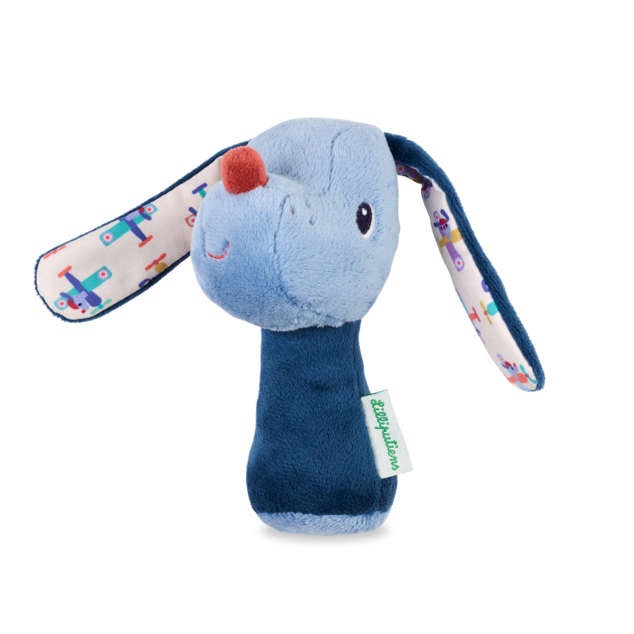 ¡Piou, piou! ¡Jules se lo está pasando genial con el bebé! Con este suave sonajero Piou, es fácil entretener al bebé en cualquier momento, a partir de los 3 meses. Para que suene, nada podría ser más sencillo: solo sacude o gira y ¡suena un sonido de "orina!" ¡Qué ruido tan gracioso! ¡Para Jules el perro, conoce los bucles! ¡Cuenta con él para entretener al bebé y hacerle reír a carcajadas! Al agitar este sonido delante de los ojos de tu pequeño, desarrollas su agudeza visual y su audición. Durante el tiempo de juego del bebé, este juguete de aprendizaje temprano también es ideal para atraer su atención y despertar su curiosidad. ¡Era imposible resistirse al encanto de Jules! Con su hocico suave, su divertida nariz roja y su sonrisa divertida, atrae abrazos de inmediato. Sus largas y suaves orejas, decoradas con sus expediciones a bordo de su avión, invitan a las manitas a explorar. Cuando el niño es capaz de agarrar el sonajero y hacerlo sonar, estimula su agarre y su pensamiento. Este pequeño juego ayuda al bebé a entender que sus gestos tienen un impacto: una primera introducción al vínculo entre causa y efecto, mientras se divierten. Con sus proporciones de 5,4 x 7,5 x 13 cm, este sonajero es súper fácil de manejar para los más pequeños. Hecho de poliéster, este juguete de aprendizaje temprano de Lilliputiens se puede lavar a mano para facilitar su cuidado. Vamos, otra vez: ¡mea!