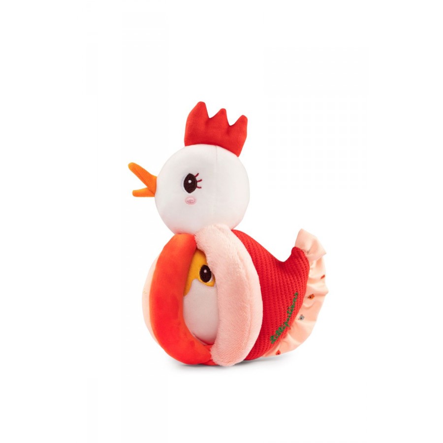 El pollito de Paulette acaba de romper el cascarón. ¡Corre a refugiarse en su mamá pero de vez en cuando sale para jugar con su dueño! Este original sonajero hará las delicias del bebé. Es fácil de agarrar con sus manitas y estimula los sentidos de los más pequeños con las distintas texturas de las asas del sonajero. ¡Y es muy fácil sacar el pollito que se refugia dentro de Paulette la gallina y volver a esconderlo tantas veces como se quiera para divertirse sin parar! Este sonajero de asas está pensado para bebés a partir de 6 meses.