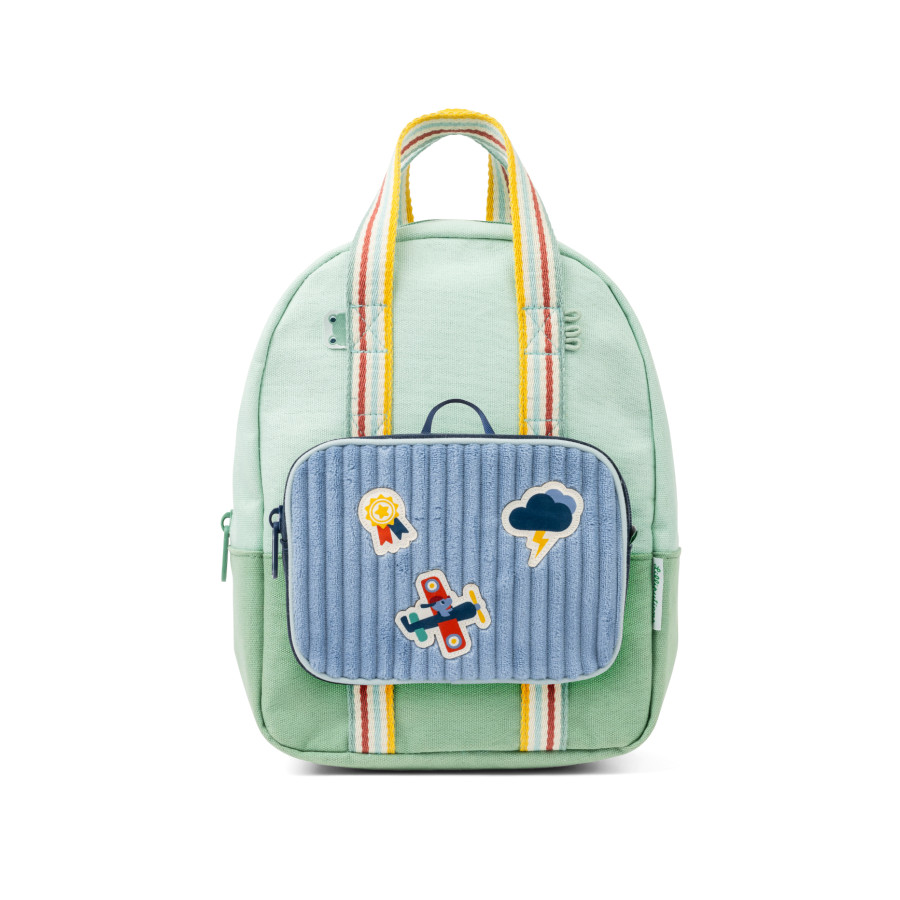 ¡Una mochila especialmente diseñada para acompañar a los niños pequeños en todas sus expediciones! Con ello, no hay riesgo de mojar las pertenencias de tu hijo cuando llueve. Está fabricado con materiales reciclados de PET de alta calidad y resistentes al agua. Con sus tonos verdes brillantes y sus hermosos surcos coloridos, esta mochila de manzanas está inspirada en James the Frog. Por cierto, si miras con atención, aparece discretamente en la parte delantera de la bolsa: ¡no iba a perderse las locas aventuras de tu pequeña! ¡Un pie en un charco y seguro que para James se lo pasa bien! Gracias a sus correas ajustables en los hombros, la mochila se adapta fácilmente al tamaño de tu niño pequeño. En cuanto a su espalda acolchada, garantiza una verdadera comodidad para tu hijo. Sus dimensiones de 11 x 29 x 30 cm la convierten en una bolsa ideal para llevar los tesoros de tu pequeño al colegio o a paseos familiares. Dentro de la bolsa, un pequeño espacio espera pacientemente el nombre de su dueño. Y para mayor seguridad, una tira reflectante se coloca en una de las correas de los hombros. ¿Planeado un paseo largo? Una goma elástica dentro de la bolsa te permite sostener una botella de agua. ¡Pero eso no es todo! Además de todas estas características, ¡este bolso es personalizable! Es una de las bolsas Lilliputian Mix & Match que se pueden complementar con una bonita bolsa delantera. ¡Elige entre los 6 modelos de clip para convertirlo en un compañero único! La bolsa es súper práctica para guardar muchos objetos que quieres coger fácilmente. ¡Aventura!