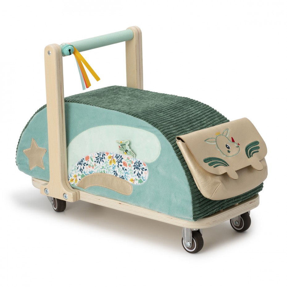 Sentados cómodamente en este correpasillos suave, los pequeños pueden correr por la habitación de forma segura. La pequeña bolsa es removible. Cuando el niño es demasiado grande para el correpasillos, el asiento se puede quitar y utilizar como puff.
