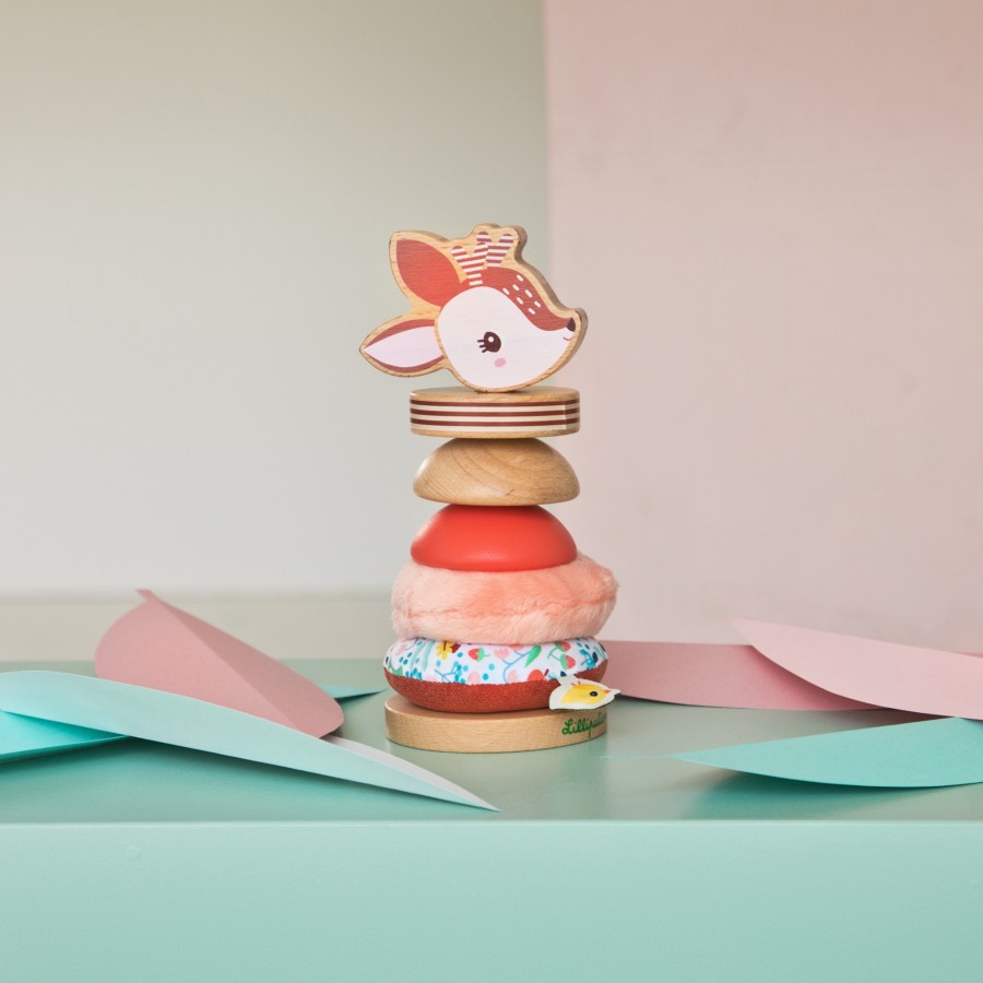 Esta original y alegre pirámide para apilar, confeccionada con diversos materiales, desarrolla las habilidades motrices finas de los más pequeños. Apila las piezas una encima de otra y da rienda suelta a tu creatividad. Los distintos materiales y colores estimulan los sentidos.