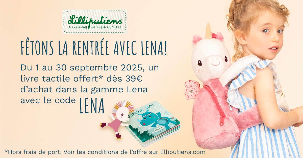 Du 1 au 30 septembre 2025 inclus, pour un minimum de 39€ d'achat dans la gamme Lena, recevez gratuitement un livre tactile avec le code LENA.