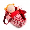 Un petit bébé pour votre bébé ! Avec ce poupon en tissu de 22 cm, votre enfant dorlote, pouponne et prend soin de bébé Agathe, dès l'âge de 12 mois. Avec ses 4 accessoires, c'est la poupée en tissu idéale pour imiter les grands. On adore ses petites couettes blondes et son visage amical. Pour jouer les apprentis parents, votre enfant dispose d'un joli couffin confortable, mais surtout réversible ! On change de style à sa guise, puis on installe sa poupée pour un bon dodo. Et pour les mini-parents toujours en vadrouille, on se sert des poignées sur le côté pour se promener pendant que bébé dort paisiblement. Ou pourquoi pas l'emmener au parc ? Pour border leur petite poupée, une jolie couverture est incluse. Elle propose une face duveteuse, et une face décorée de motifs rouge-gorge. Jouer à la poupée permet aux tout-petits de développer leur imagination, leur capacité d'empathie et leurs compétences sociales. Ils reproduisent avec joie les gestes du quotidien, quand vous prenez soin d'eux ou de leur petit frère/petite sœur. Pour leur permettre également de développer leur motricité fine et pour toujours plus de réalisme, les vêtements d'Agathe (pyjama et couche) peuvent être retirés et remis encore et encore. La jolie frimousse et les accessoires adaptés aux bambins font de ce petit poupon un premier ami de choix pour commencer à jouer à la poupée. Vous pouvez laver ce poupon en tissu Lilliputiens et ses accessoires en machine à 30°, dans un filet ou taie d'oreiller pour préserver sa douceur au maximum.