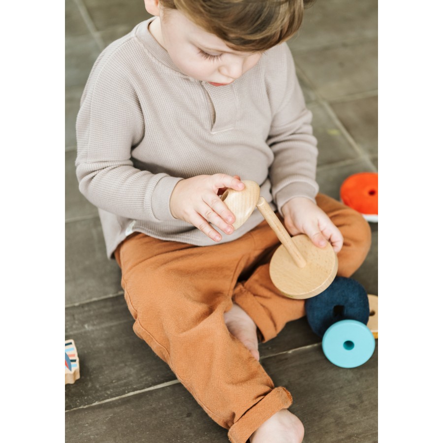 Cette pyramide à empiler originale et gaie, réalisée en différents matériaux, développe la motricité fine des petits bouts. Empilez les éléments et donnez libre cours à votre créativité. Les matériaux et les couleurs de nature différente éveillent leurs sens.