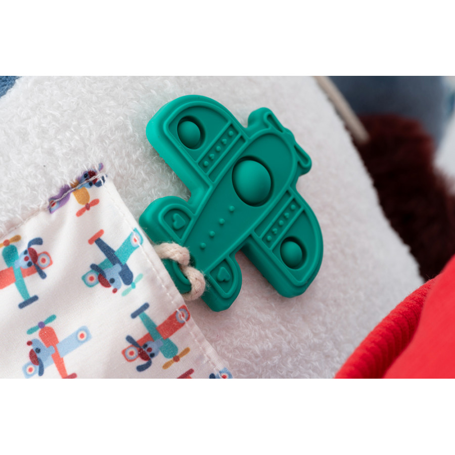 Aviateur hors pair, un peu maladroit, mais toujours prêt à aider ses amis ; voici Jules : le petit chien de la joyeuse bande Lilliputiens. Cette maxi peluche chien de 55 cm propose 7 activités. Vous pouvez la proposer en décoration ou comme compagnon de jeu aux plus petits dès l’âge de 6 mois. Notre chien un peu pataud est doté d’une poignée au niveau de la queue, pour facilement l’emporter partout ! Votre enfant ne se lassera pas de caresser la bonne bouille de Jules et s’installera confortablement contre lui pour de tendres câlins ! De plus, la grande peluche bleue dispose de nombreuses activités d’éveil comme une clochette amusante dans la tête, du papier bruissant dans une oreille, un anneau de dentition en silicone détachable avec activité de popping, ou encore un miroir rond pour s’admirer. Enfin, Jules est accompagné d’un hérisson en peluche à faire tinter joyeusement et propose un « pouet » dans sa patte ! En plus de joliment décorer la chambre de votre bambin et d’être toujours disponible pour les câlins ; cette peluche géante lui permet de développer son acuité visuelle et auditive, et favorise la découverte tactile grâce aux nombreuses activités à explorer. Avec ses détails aériens, ses couleurs apaisantes, ses matières riches et agréables, et ses nombreuses activités, la peluche Découvertes Jules le chien égayera la déco de chambre de votre enfant, qui ne manquera pas de le câliner. On adore son bonnet rouge, ses longues oreilles et son imprimé avions ! Ce jouet d’activités se lave facilement en machine à 30° après avoir retiré l’avion en silicone. Ajoutez une touche de rêve et de réconfort à l’espace jeu de votre petit bout !