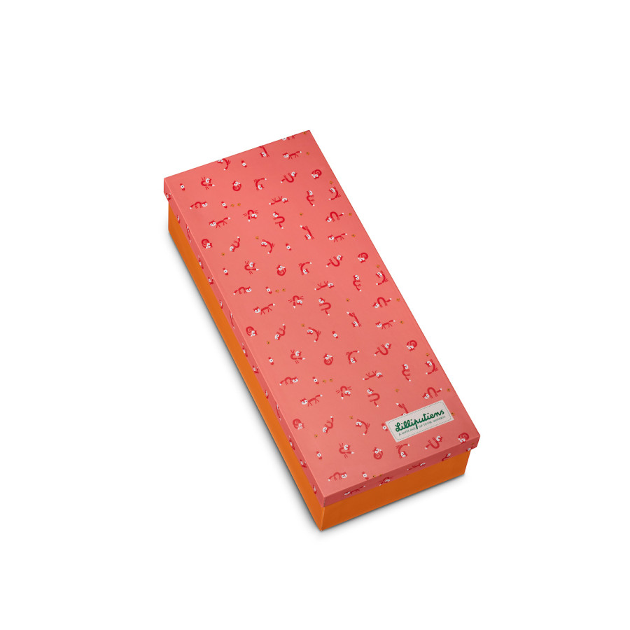 Découvrez la poupée en tissu Alice, à l'image de notre renarde câline et futée ! Avec sa frimousse amicale, ses jolies couettes et sa tenue originale, c'est la poupée idéale pour les enfants à partir de 2 ans. La poupée Alice mesure 32 cm et est présentée dans sa jolie boite assortie, ce qui est parfait pour vos cadeaux ! Avec leur nouvelle amie, les tout-petits développent leur imagination, leur capacité d'empathie et leur motricité. C'est une poupée spécialement conçue pour accueillir les câlins et les confidences, mais aussi pour vivre toute sorte d'aventures, dans la forêt comme partout ailleurs. Ce qui caractérise notre petite Alice, c'est d'abord son bonnet avec des oreilles super douces. Tout comme ses bottes, qui lui permettent de sautiller partout ! Elle adore faire tournoyer sa petite robe décorée à l'effigie de notre renarde. Les petits peuvent s'amuser à retirer le bonnet de cette poupée Lilliputiens aux cheveux bruns. Cette poupée toute douce est une chouette idée cadeau, présentée dans son coffret à motifs renards, qui peut être réutilisé comme boîte de rangement par la suite. La poupée Alice sera rapidement la nouvelle amie inséparable de son petit propriétaire. Elle rappelle l’insouciance, l’espièglerie et le bonheur des choses simples. Vous pouvez laver la poupée en machine à 30°.