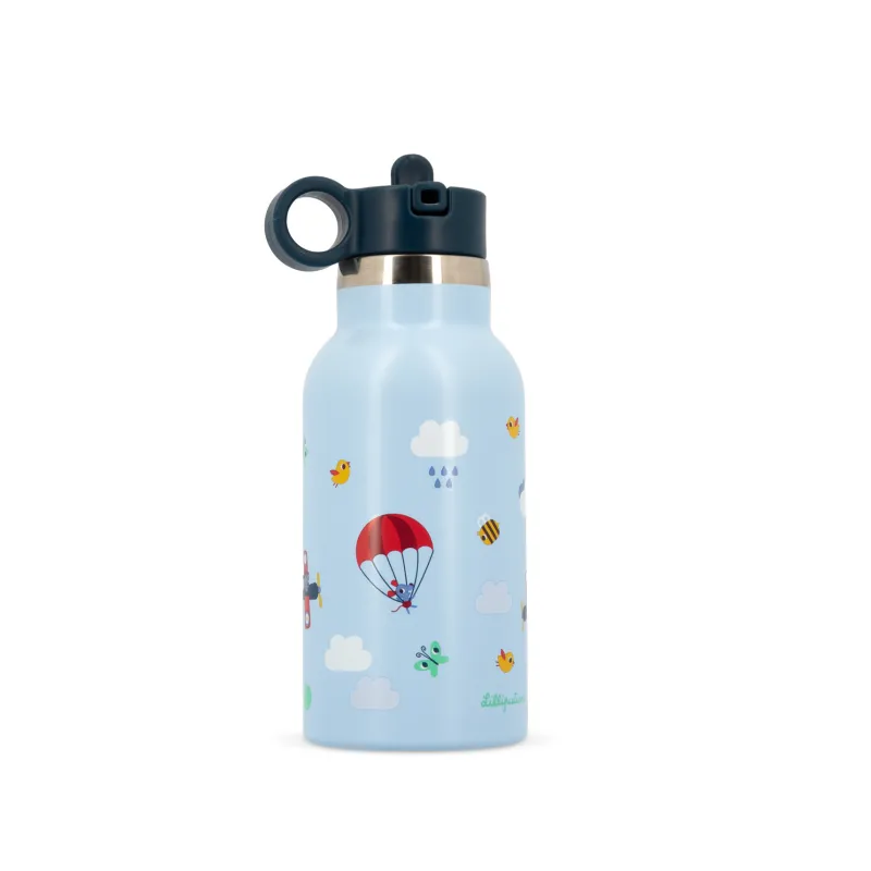 Des boissons toujours à la bonne température pour accompagner les aventures de votre enfant ! Entre les balades et les jeux en extérieur, il est essentiel pour votre enfant de savourer une boisson bien fraîche en été ou un délicieux chocolat chaud en hiver ! Jules l’aviateur a imaginé une façon ludique de rendre ces moments encore plus captivants : un jeu de “Cherche et trouve” directement sur la gourde. Les enfants s’amusent à repérer les détails cachés parmi les illustrations aériennes : nuages, parachute, abeille... De quoi transformer chaque gorgée en mission amusante ! Avec sa contenance de 350 ml, cette gourde est parfaite pour l’école, les sorties ou la maison. Elle garde les boissons à la bonne température, pour accompagner votre enfant en toutes saisons. Son bouchon pratique avec paille intégrée assure une utilisation simple et sans risque de renverser, même en pleine exploration ! Compacte, résistante et légère, elle a été pensée pour les petites mains et s’associe parfaitement à la boîte à déjeuner pour des journées pleines de découvertes. Pour préserver ses jolies illustrations, nous recommandons un lavage à la main, à l’eau froide.