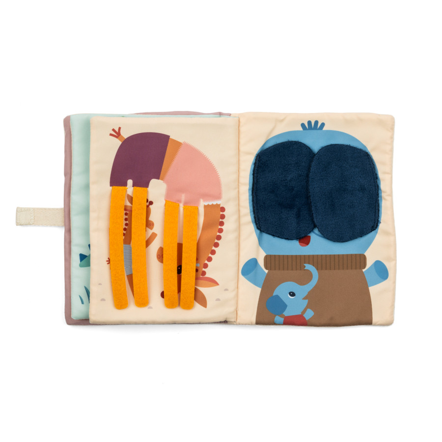 Jack e i suoi amici si sono messi a giocare a nascondino! Sta a te trovarli! Con questo libro di attività in tessuti, i bambini si divertono a mostrare gli occhi degli animali dietro il loro nascondiglio: il leone con le zampe, il lemure con la coda. Basta sollevare o spostare gli elementi per partecipare al gioco! Manipolando il libro, i più piccoli stimolano le loro abilità motorie fini e il tocco in modo giocoso. Sulla copertina, Jack il Leone dà il via alla partita! Le sue zampe magnetiche si attaccano per nascondere gli occhi e liberarsi per ricominciare all'infinito. Nel corso delle pagine, animali divertenti e i loro piccoli si prestano al gioco, invitando i bambini a divertirsi con loro. E quando arrivi all'ultima pagina... Una sorpresa divertente attende i piccoli! L'elefante ha una scoperta divertente dietro le sue grandi orecchie! Questo libro di apprendimento per la prima infanzia, pensato per bambini piccoli a partire dai 9 mesi, è anche un modo per occupare e intrattenere il proprio bambino in macchina o durante i momenti di tranquillità a casa. Risveglia la curiosità e nutre l'immaginazione dei bambini piccoli, per momenti di gioco e scoperta. È anche un'opportunità per nominare gli animali incontrati e arricchire il vocabolario. Ai vostri nascondigli!