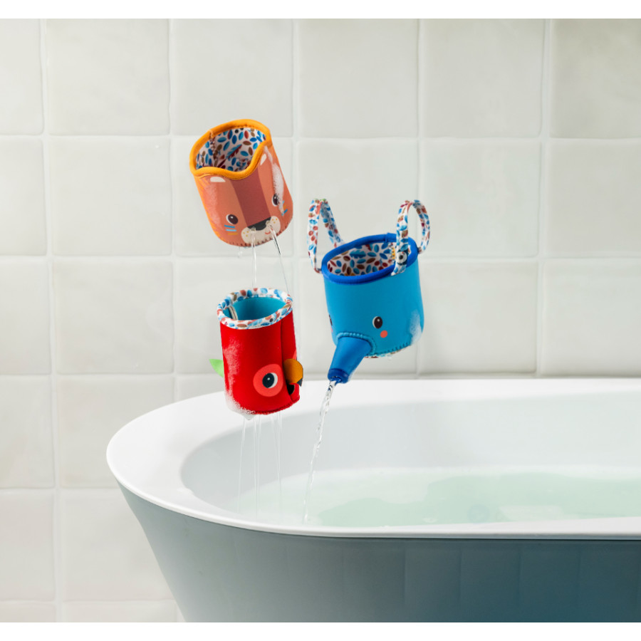 La cosa che più piace a Jack del nuoto è sguazzare! Insieme al fedele amico Gilles il pappagallo e al loro amico elefante, i tre si dirigono verso una divertente sessione di bagnetto. Questo giocattolo da bagno è adatto ai neonati a partire dai 6 mesi e ai bambini fino a 6 anni e più. È composto da tre tazze con getti d'acqua diversi per divertirsi nella vasca da bagno! Per prima cosa, Jack il Leone ti spruzza attraverso il muso, dall'apertura appena sotto il naso. Poi è il turno dell'elefante: afferrandolo per le sue grandi e buffe orecchie, che servono anche da maniglie, vi spruzzerà acqua con la sua proboscide come se fosse un annaffiatoio! Infine, il pappagallo Gilles ti spruzza sulla testa, grazie alle sue aperture situate sotto! Questo gioco d'irrigazione continuerà a stimolare la curiosità del bambino e a sviluppare le sue capacità motorie! Il tuo bambino si divertirà un mondo ad incastrare le tazze e a scoprire i diversi getti d'acqua. Questo pratico set di secchi da bagno è realizzato in neoprene e poliestere: si asciuga rapidamente e facilmente. Sono anche integrati, per una conservazione ancora più semplice. Che sia per lavarsi o per divertirsi in acqua in una giornata calda, questo gioco d'acqua dei Lilliputiens promette lunghe ore di divertimento! È ideale per stimolare la coordinazione e le capacità motorie, ma anche per incoraggiare la scoperta nei più piccoli. Per incoraggiare i bambini più grandi a essere più indipendenti, è possibile utilizzare queste tazze da bagno per sciacquarli prima di uscire dall'acqua. Nel loro formato 12 x 8,5 cm, queste tazze da bagno in tessuto possono essere risciacquate con acqua pulita e devono essere asciugate dopo ogni utilizzo. Se necessario, puoi lavarli in lavatrice a 30°.
