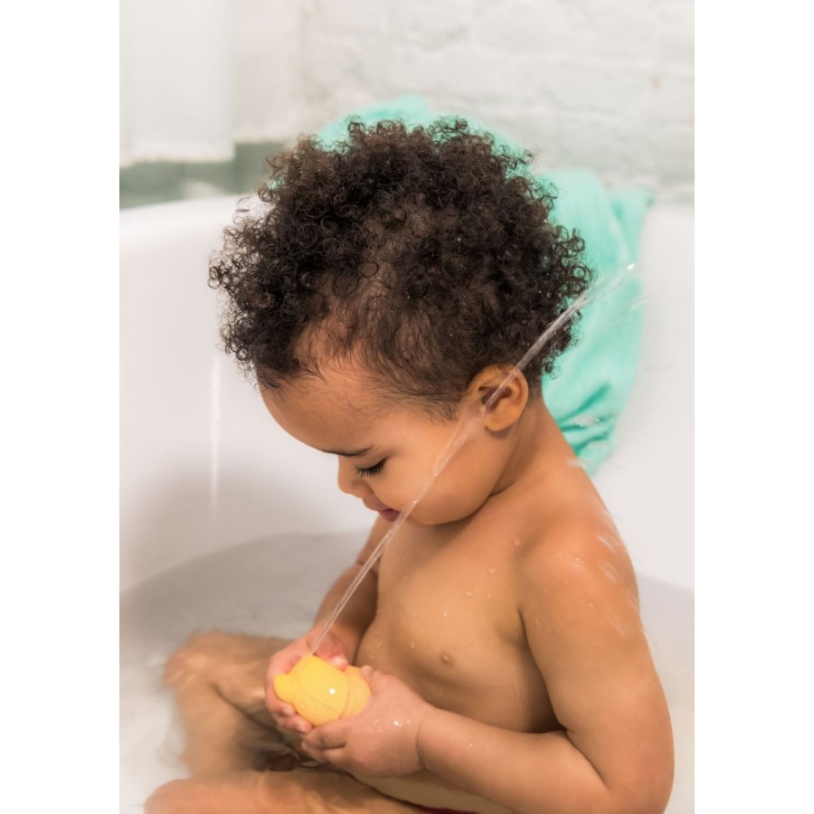 Gaspard l’anatra prende e spruzza l’acqua a piacere. Se vuoi riposarti un attimino nella vasca dopo aver giocato nell’acqua, galleggia tranquillamente nel suo guscio d’uovo accanto a te sull’acqua. Prende e spruzza l’acqua a piacere. Si può lavare nella lavastoviglie.