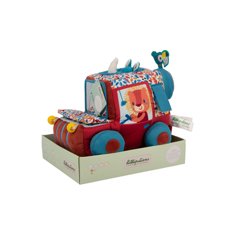 Con Jack al volante e Marius che spunta la testa dal tetto per scrutare la strada, la macchina safari è pronta per partire alla scoperta delle terre selvagge. Con i suoi colori vivaci e le sue texture variegate, offre un mondo di esplorazione sensoriale per i piccoli avventurieri. Le numerose attività invitano i giovani esploratori a sviluppare i loro sensi, la loro creatività e la loro curiosità.