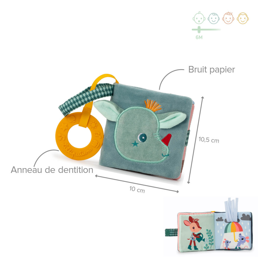Génial ! Mon petit de 6 mois adore ces livres qu'il triture et regarde dans tous les sens. Avec le petit cercle à mordre en plus, c'est top! Idéal pour le distraire quand on le change!