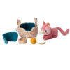 Che adorabile gattino nel suo cestino! Jeanne, il gatto di peluche, e i suoi accessori faranno impazzire grandi e piccini, a partire dai 12 mesi. Per divertirsi e prendersi cura del suo primo gattino, il vostro bambino ha tutto il necessario: un cestino reversibile con un lato rigato e un lato fantasia, un gomitolo di lana gialla, una ciotola di legno con una stampa di pesci sul fondo e un gilet rimovibile. Quattro accessori per nutrire il suo gatto di peluche, farlo giocare o dormire tranquillamente nella sua cesta. Grazie ai manici, Jeanne e le sue piccole cose possono essere trasportate ovunque si desideri! Il suo piccolo extra: un magnete integrato per far divertire Jeanne il gatto a tenere la pallina sul naso! Un peluche davvero morbido, originale e adorabile! I motivi gialli a forma di ciliegie stampati sul cestino sono abbinati a quelli sulle orecchie di Jeanne. Ricordano i frutti che crescono nel giardino dove lei ama giocare! I suoi piccoli baffi a nastro sono un'ulteriore estensione da esplorare mentre si coccola questo peluche Lilliputiens. Jeanne adora indossare il suo gilet per giocare all'aperto, far rotolare la sua pallina preferita e fare un pisolino dopo un buon pasto. Con lei, il vostro bambino svilupperà la sua immaginazione e il suo senso di empatia. Dolce e amichevole, Jeanne sarà un'amica fedele per il vostro bambino. Il peluche rosa e i suoi accessori sono lavabili in lavatrice a 30°, ad eccezione delle parti in legno. Ascoltate questo dolce fare le fusa...