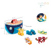Tutti a bordo! Nella prima arca di Noè dei più piccoli, gli animali arrivano a coppie. In totale, 10 piccoli peluche di animali sono inclusi con la barca in tessuto. È perfetto per permettere ai bambini, già dai 18 mesi, di inventare storie. Tutti insieme, salpate verso le avventure più incredibili con: 2 lemuri, 2 giraffe, 2 coccodrilli, 2 rinoceronti e 2 leoni. Ogni animale ha una caratteristica diversa per distinguerlo: riuscirai a trovarle tutte? L’intera compagnia entra all’interno della barca attraverso l’apertura.