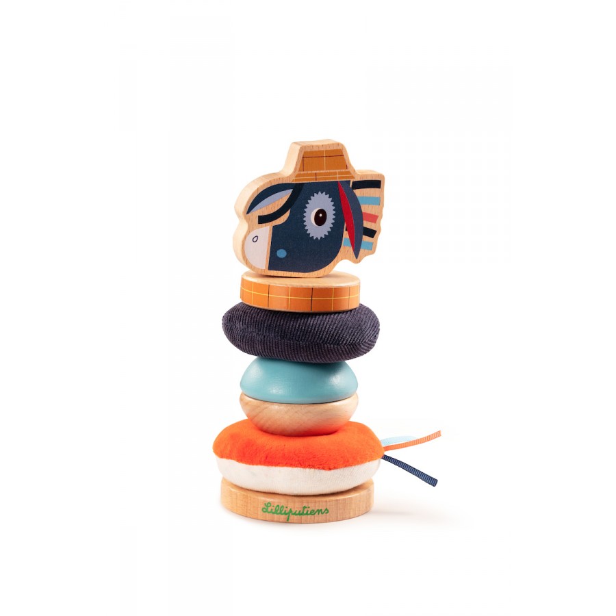 Realizzata in diversi materiali, questa originale e allegra piramide impilabile sviluppa le abilità fino motorie dei piccoli. Impila i pezzi uno sull'altro e dai libero sfogo alla tua creatività. I diversi materiali e colori stimolano i sensi.