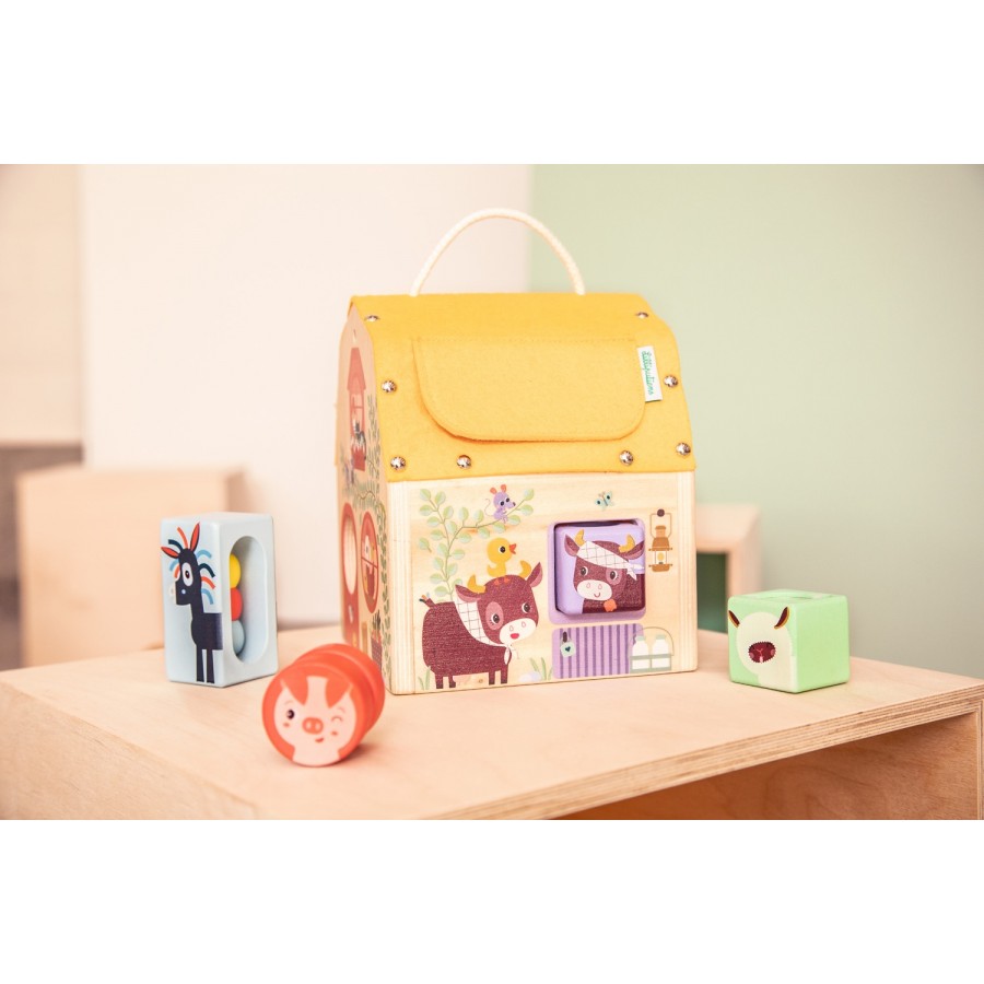 La fattoria è in festa! Aiuta gli animali a entrare nella casetta associando forme e colori. Ciascun animale ha una forma e un suoni differenti. Un regalo per le mani, le orecchie e la mente dei più piccoli.