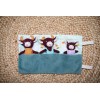 | Composizione | Esterno : Personaggi: 100% Lino – vestiti: 100% Cotone – borsa portaoggetti : 100% poliestere. Interno : 100% poliestere riciclato |