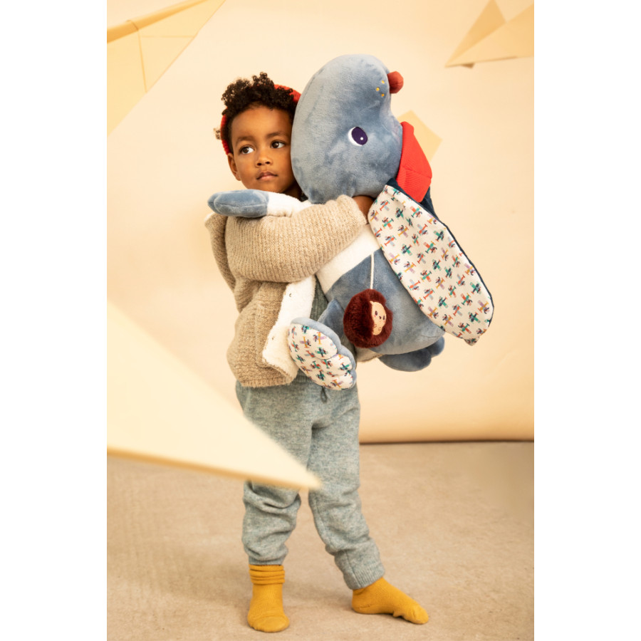 Met zijn wat pluizige uitstraling is Jules de hond gewoonweg onweerstaanbaar. Hij biedt een boeiende tactiele ervaring bij elke streling. Met een verscheidenheid aan texturen en activiteiten ontdekt het kind een wereld van sensaties, waardoor zijn sensorische ontwikkeling wordt gestimuleerd. Zachte stoffen, een bijtring en popping spel in de vorm van een vliegtuig, en nog veel meer verrassingen wachten om ontdekt te worden. Naast decoratief te zijn, biedt deze geruststellende hond urenlang stimulerend en rustgevend spel.