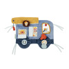 Op zoek naar speelgoed voor in de box? Jules de hond arriveert met zijn vrachtwagen, zijn gereedschap en zijn vrienden! Alles om de zintuigen te prikkelen en de baby te vermaken, vanaf 3 maanden. In totaal biedt dit stoffen activiteitenpaneel 6 activiteiten. Voorin de vrachtwagen staat onze klusjesman hond op een spiegel om zichzelf te observeren en met een rode bel om te rinkelen. Essentieel om te beginnen, de rode toets gaat "Toet" als je erop drukt: onderweg! Op de twee wielen van de vrachtwagen is er een balrammelaar om te draaien en een klep om op te tillen om verrassingen te ontdekken. In totaal worden er 3 panelen geopend om alle geheimen van dit ontdekkingspaneel te onthullen. Maar pas op voor hobbels, want Léon de egel zou wel eens aan weerszijden van de vrachtwagen kunnen glijden tijdens de rit naar de bouwplaats! Zoals je kunt zien, staat dit speelgoed voor vroeg leren in het teken van doe-het-zelf, omdat het een van de passies is van onze lieve Jules ... En binnenkort misschien wel je baby! Dit lilliputters-activiteitenpaneel is gemakkelijk op te hangen aan de spijlen van de box of het bed dankzij de 4 banden om vast te binden en kan ook eenvoudig op de grond worden geplaatst om de posities van de kleintjes tijdens hun speeltijd te variëren. Met zijn verschillende visuele, tactiele of geluidsverrassingen, zijn gevarieerde en kleurrijke materialen, is dit speelgoed op jonge leeftijd een echte aanwinst voor het ontwaken van de baby. Hij ontwikkelt zijn fijne motoriek, zijn zicht, zijn gehoor, maar ook zijn denken, zijn nieuwsgierigheid en zijn verbeeldingskracht: voor welke doe-het-zelf-missie gaan onze vrienden? Dit stoffen paneel meet 41,5 x 30 cm en is met de hand wasbaar. Laten we gaan, kinderen!