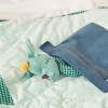 Op dit zachte, mooi geïllustreerde speeltapijt maak je kennis met Joe de draak en zijn toverkunsten. In het gezelschap van de kleine drakenrammelaar, ontdekt baby ontdekt de vele activiteiten zoals knispergeluidjes, flapjes en fosforescerende deeltjes. Wanneer baby groter is, wordt het speeltapijt een knusse slaapzak voor heerlijke dutjes. Dankzij de handvaten is hij makkelijk mee te nemen. 2 in 1: een speeltapijt dat mee evolueert met jouw baby en een slaapzak wordt.