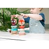 Vrolijke stapelpiramide om de fijne motoriek te ontwikkelen. Stapel de onderdelen creatief op elkaar. De verschillende materialen en kleuren stimuleren de zintuigen.