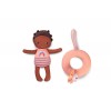 Wie droomt er niet van om samen met een eenhoorn in bad te gaan? Deze kleine pop en haar eenhoorn zorgen voor magische momenten in het bad om samen ongelofelijke avonturen te beleven! Dit popje van polyester is 18 cm groot en maak het baduurtje nog leuker. Rondom haar middel heeft ze een meerkleurige zwemband voorzien van een eenhoornhoofd. De pop kan, na badtijd, aan het daartoe voorziene lusje opgehangen worden en droogt snel weer op.