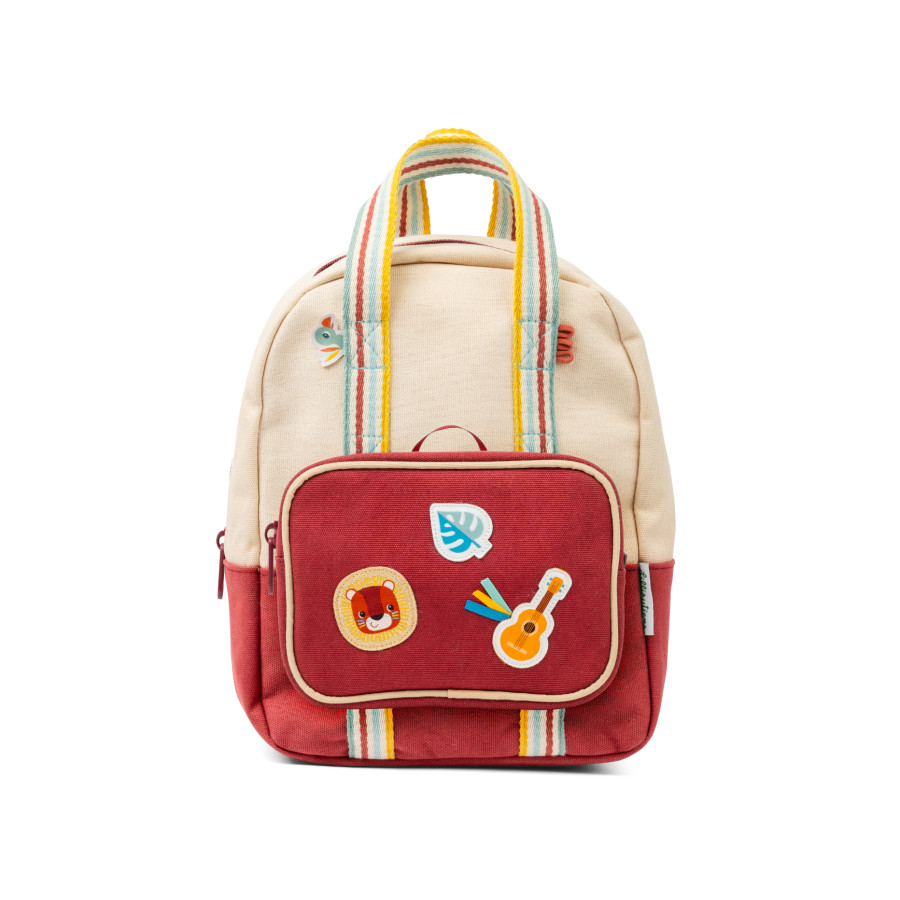 Een rugzak die peuters op al hun expedities begeleidt! Hiermee is er geen risico dat de spullen van uw kind nat worden tijdens uitstapjes in de regen. Het wordt gemaakt van hoogwaardige, waterbestendige PET-gerecyclede materialen. Met zijn beige tinten en prachtige kleurrijke groeven zal deze amberkleurige rugzak je kind heel gemakkelijk aankleden. Trouwens, als je goed kijkt, is er een vogeltje in de voorkant van de tas geslopen om je kleintje gezelschap te houden tijdens zijn gekke avonturen! Dankzij de verstelbare schouderbanden past de rugzak zich aan de maat van je kind aan. Wat betreft de gevoerde achterkant, het zorgt voor echt comfort. De afmetingen van 11 x 29 x 30 cm maken het een ideale tas om de schatten van je peuter op school of tijdens familiewandelingen op te bergen. In de tas is ruimte om de naam van de gelukkige eigenaar te schrijven. En voor extra veiligheid zit er een reflecterende strook op een van de schouderbanden. Voor superpraktische opslag kan je een elastiek in de tas vasthouden met een waterfles. Maar dat is nog niet alles! Naast al deze functies is deze tas ook aanpasbaar! Het is een van de Lilliputtian Mix & Match tassen die je kunt versieren met een mooie zak aan de voorkant. Kies uit de 6 clip-on modellen om het een unieke metgezel te maken! De tas is super praktisch om veel voorwerpen op te bergen die je makkelijk wilt pakken. Avontuur!